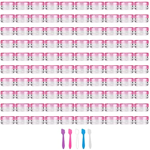 - Package includes 100 pieces empty clear plastic sample containers with lids and 5 pieces mini spatulas; Good for traveling.