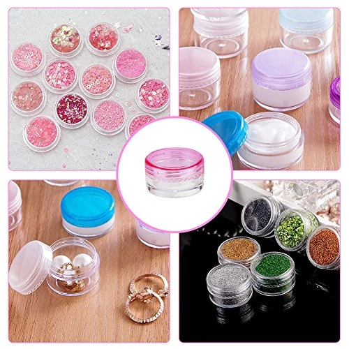 Details: Accmor empty clear plastic Cosmetic sample containers 3 gram size round cosmetic pot jars with lids and 5 pieces mini spatula. clear containers: