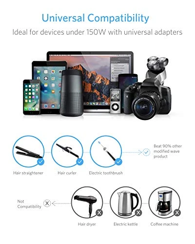 - 【The World’s First Pure Sine Wave】 BESTEK power converter provides more stable sine wave output and convert all countries’ voltage to US voltage (110V), more compatible to all kinds of electronic devices and digital products.