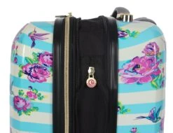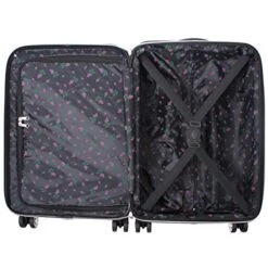 Betsey Johnson, conquers a dualism between Rock and Roll, and “Girly Girl”. This is significant in its overall design philosophy. The designer patterns bring a vacation-ready vibe to this Betsey Johnson suitcase. Each piece is made from a signature fabric. This wheeled duffel use reinforced handle poles for extra strength and durability. The construction of the bag is designed to maximize space and leave extra room for packing when you need it. This is a beautiful piece of traveling art piece specially designed for the environmentally conscious modern lady!