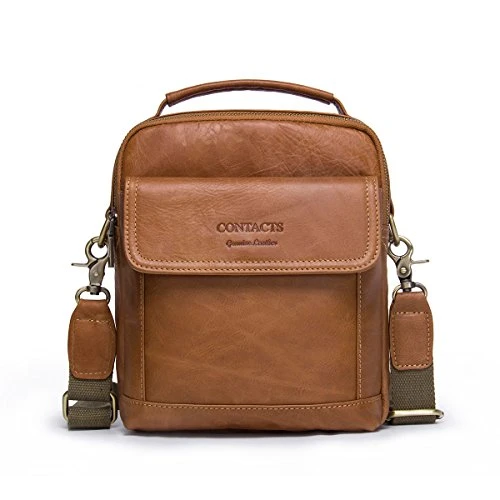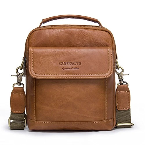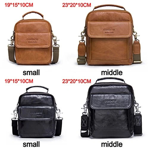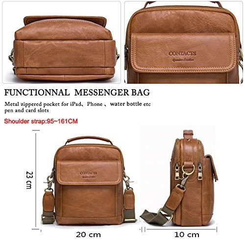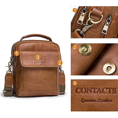 - Men bag is made of genuine leather; the strap is canvas and Lining is Polyester; it is a great daypack for school, dating, shopping and traveling in daily life. It is a great gift for your boyfriend, husband, father and son.