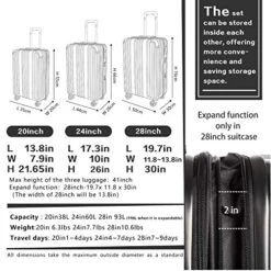- 3 piece luggage set 20 inch,24 inch,28 inch upright, can be stored one into another.100% ABS, Lightweight yet extremely durable abs material.