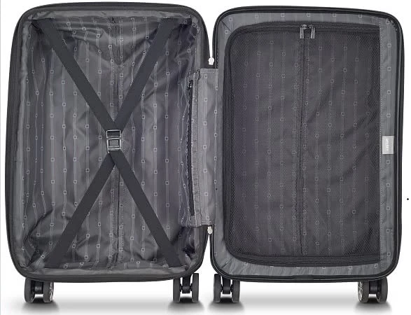 - The interior includes two full packing compartments with elastic straps and a mesh panel to secure your belongings. A zippered lined pocket comes handy to store accessories or toiletries.