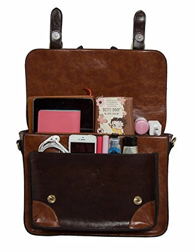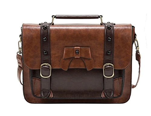 The ECOSUSI Vintage Messenger Purse Girl’s School Satchel is very attractive and could be used as a young girl’s school bag or as a brief case for a woman. It is very attractive, well made of soft faux leather. The dimensions are L12.8 x W3.8 x H10 inches. The bag has a very nice (and expensive) look and feel. The interior lining is very stylish and appears that it will hold up very well.