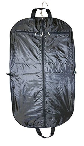 Details: Take your dress clothes with you confidently on vacation with this stylish garment bag! This piece of lightweight luggage is great for jet setters and can be used for a quick, close by staycation or for a weekend excursion to your favorite retreat. Made out of durable 600 Denier Polyester fabric in a chic print. This garment bag folds in half and can be hung by its metal hook. The interior of this bag features multiple zipper pockets to hold shoes and accessories. Perfect for transporting cheer uniforms or theatre costumes to and from while keeping them clean and wrinkle free! Organize your closet and keep delicate, high quality items neat and pristine.