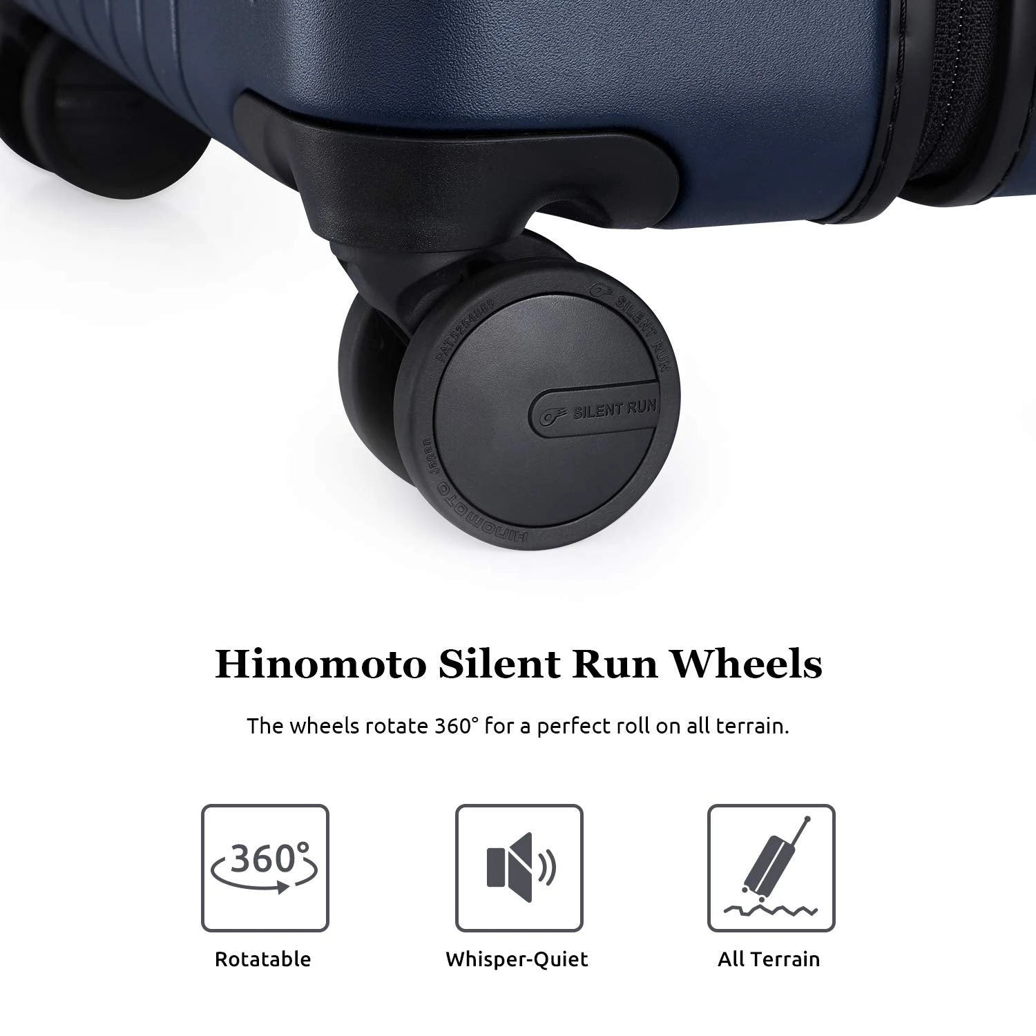 - WHISPER-QUIET SMOOTH WHEELS – The international airline checked luggage is fitted with four premium Hinomoto Silent Run 360 spinner wheels that are durable, resilient and hard to wear out providing you with an ultra smooth, light weight, quiet and long lasting operation. Made in Japan, these wheels make rolling on any terrain easy on your arm.