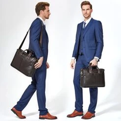Bostanten Leather Lawyers Briefcase Shoulder Laptop Business Slim Bags For Men & Women Black