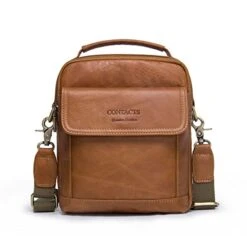 Contacts Mens Genuine Leather Crossbody Single-Shoulder 9″ Mini IPad Messenger Tote Bag (Brown)