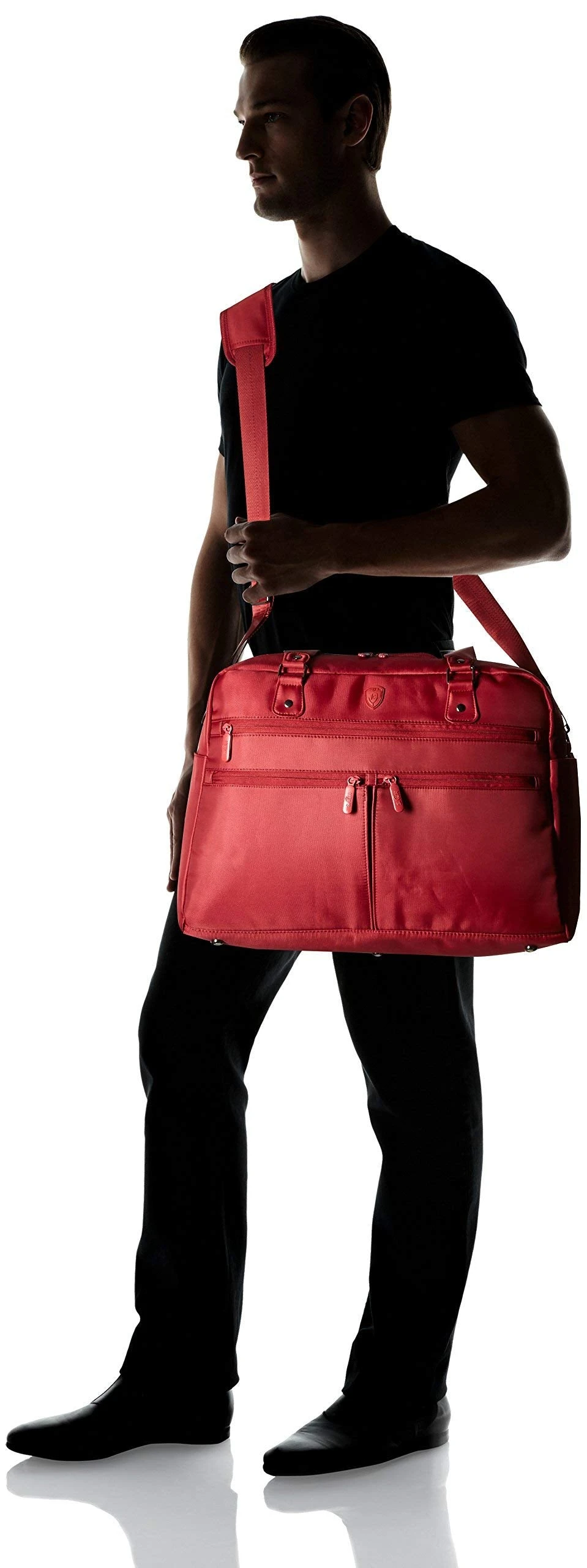 Details: Part of the HEYS HiLite Travel Bags Collection, this is the perfect carry-on duffel/weekender for anytime you?re on the go, keeping you organized, secure and in style. It includes multiple compartments and pockets for organization, including fleece lined exterior pockets to keep your tech items handy and protected. It has an interior padded 15.6? laptop compartment, 2 handy exterior bottle pockets, and RFID shield protection to keep you safe from wireless theft. Back zip pocket converts into a slide-through panel for trolley handles when traveling. Comfortable to carry with padded handle and detachable padded/adjustable shoulder strap.