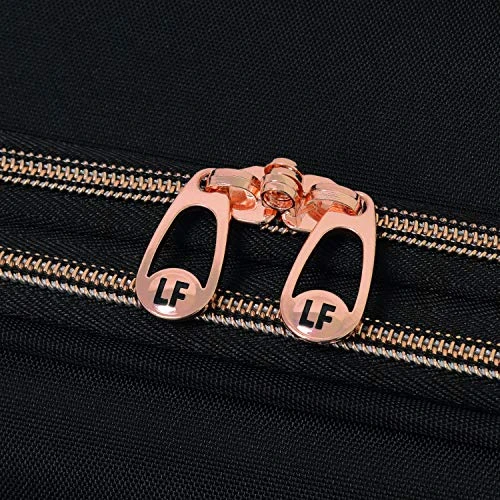 Details: London Fog Bromley 15″ Under the Seat Bag , Black with Rose Gold Accent