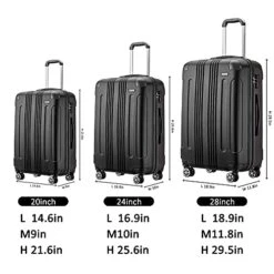 JOYWAY Luggage 3 Piece Set Suitcase Lightweight Hardshell TSA Lock Spinner (black)