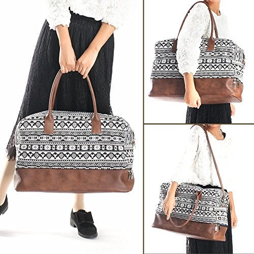 - HAND-CRAFTED DESIGN: The large and spacious weekender bag is created with premium quality dark canvas and soft, brown faux leather accents. The interior is finished with a luxurious brown cotton lining that looks fantastic and protects your items wherever you take them.
