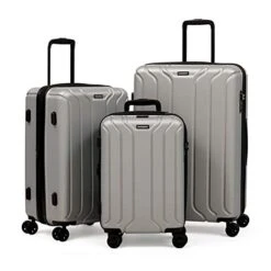 - BUILT FOR CONVENIENCE: This hardshell lite weight 3pc spinner luggage set provides 2″ expansion for even more storage space along with a built-in recessed TSA approved combination lock system for more security on all sizes. The hardcase carry on size luggage case features an exterior double USB port that meets FAA regulations and connects to your portable powerbank charger (not included) for convenient on the go phone charging.