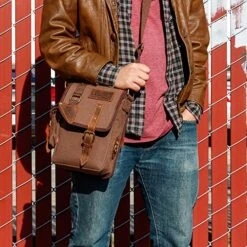 GEARONIC 14″ 15″ 17″ Men’s Messenger Bag Laptop Satchel Vintage Shoulder Military Crossbody … (17