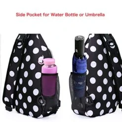 MOSISO Sling Backpack,Travel Hiking Daypack White Dot Rope Crossbody Chest Bag, Black