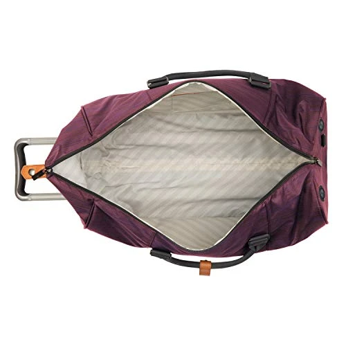 - Weather- and abrasion-resistant polyester. Telescoping handle with ergonomic grip. 2 wheels roll smoothly.