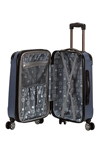 Details: This carry on is made of ABS. This material is extremely lightweight, durable, and protects the contents of your luggage. Four multi directional spinner wheels rotate 360 degrees for easy maneuverability. This luggage allows you to pack more while avoiding the excess weight surcharges imposed by most airlines. Multi-directional spinner wheels for easy maneuverability. Modern internal chrome telescoping handle with push button handle. Interior mesh and zip pocket and elastic pocket 5 year 22″X13. 5″x10″ (with wheels) weighs 7. 5 lbs.