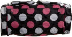 Details: Travel in style with this great soft-sided rolling duffle bag. Bag features a heavy duty polyester construction. Inline skate wheels for superior mobility, internal retractable hide-away handle system, u-top opening provides easy access to roomy zipper secured main compartment. Two front zipper-secured compartments, adjustable ergonomic shoulder strap. Made of 600 denier heavy duty polyester. Measures 22″ L x 12″ W x 11″ H