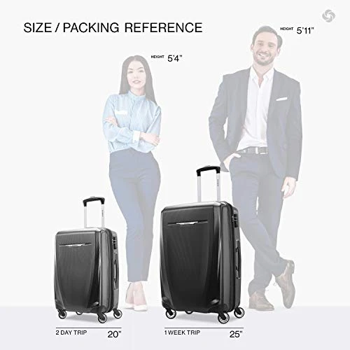 - 2 PIECE SET contains: 20 inch Carry On (meets carry on size restrictions for those traveling domestically and looking to stay light) and 25 inch Spinner (maximize your packing power and the ideal checked bag for longer trips)