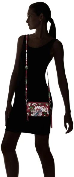 Vera Bradley Women’s Signature Cotton On The Go Crossbody Purse, Bordeaux Blooms, One Size