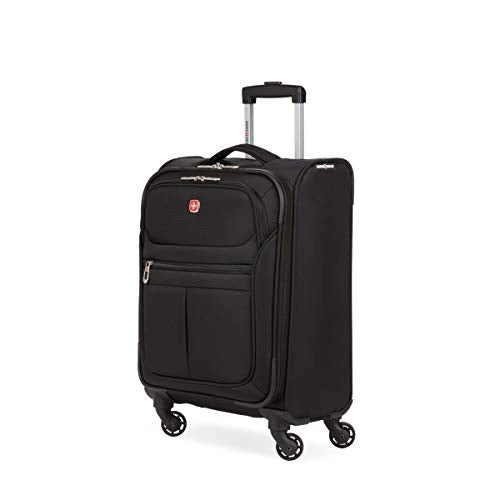 Details: Get away in confidence with the Swissgear 4010 Spinner collection. This sophisticated looking luggage collection comes equipped with a rugged locking retractable handle, lightweight lift handles, and four lightweight 360-degree multi-directional spinner wheels for the ultimate in maneuverability. Constructed of abrasion-resistant polyester fabric, other features include adjustable clothing tie-down straps, multiple internal pockets, and two front storage pockets for last-minute additions.