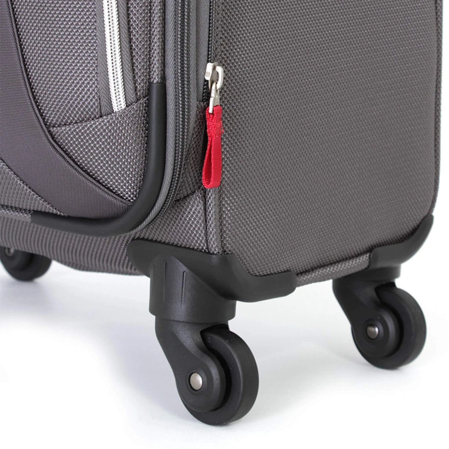 Details: Travel has never been so easy as with the Swissgear 7362 Expandable Liteweight Carry on Spinner Luggage Collection. This 3-Piece set features a 20″ carry-on and checked 24.5″ amnd 28″ luggage cases. Constructed of durable polyester fabric, this luggage features solid color designs with front panel silver accents zippers. It also comes equipped with a telescopic aluminum liteweight push/pull handle system, reinforced padded ergonomic lift handles, and four multi-directional liteweight spinner wheels that offer unlimited mobility. The interior is fully lined and detailed with adjustable clothing tie-down straps, multiple interior storage pockets for smaller items, and a removable zippered wet pack for toiletries. Other features include a built-in ID tag and two exterior front zipper pockets for last minute add-ons and items that you need to access throughout your travels.