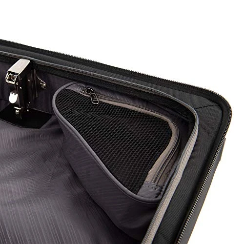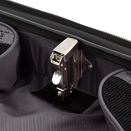 - Extension panel accommodates longer dresses and suit jackets. Metal hanger clamp helps secure hanging garments. Large zippered panel pockets and corner accessory pockets provide packing flexibility