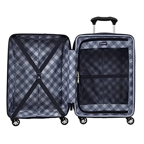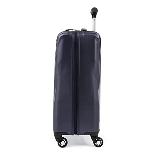 Details: Lightweight, slim and durable, the Maxlite 5 carry-on hardside spinner is designed to meet carry-on size restrictions for most domestic airlines. The ultra-lightweight polycarbonate shell provides ultimate durability, absorbing impact with flex to protect contents and resist cracking. Plus, the shell’s textured surface helps reduce visible scratching or scuff marks, while molded corner guards serve as built-in bumpers on high-wear points. The integrated lock allows TSA authorities to safely unlock and lock suitcase for inspection when needed (default lock code is 0-0-0 to open). Great for shorter trips, this bag’s split case construction and interior divider panel provide separate packing compartments, and elastic hold-down straps keep everything in its place. Roll through airports and city streets with ease on four 360 degree spinner wheels guided by the lightweight, height-adjustable PowerScope lite handle with comfortable Contour grip. Backed by Travelpro built for a lifetime limited warranty with our trusted companion promise which covers the cost of repair for damage from airline or other common carrier for 1 year.