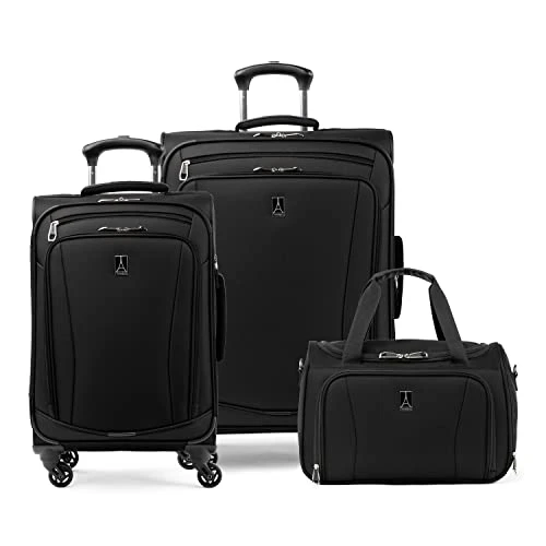Details: It’s all systems go with the Travelpro® Runway® 3-piece Suitcase Set. This complete set includes a Travelpro® Runway® UnderSeat Tote, Carry-on Expandable Spinner, and Check-in Expandable Spinner that converts from a medium-sized check-in to a large check-in bag with a unique, three-inch expansion option. It’s like having four bags in three – all made with durable polyester fabric that resists water and stains for resilience and lasting use. The UnderSeat Carry on Tote is the perfect companion travel tote bag for onboard essentials, excursions, and packing more than your luggage fits. With its soft sided, durable exterior and compact size, this underseat bag works for endless uses and has, both, a quick-access zippered exterior pocket and interior accessory pocket for securing smaller items. A padded, adjustable shoulder strap ensures an ideal fit and optimal carrying comfort. Or slip the rear strap over the extension handle of one of the spinners for secure stacking and ultimate convenience. With two expandable suitcases in this set, you get everything from an adaptable carry on suitcase to a medium or large check-in suitcase. Each spinner luggage has two external zippered pockets, a full-length interior lid pocket, side accessory pocket, and adjustable hold down straps for organized packing. Smooth-gliding, 4-wheel spinners rotate 360° to provide superior maneuverability led by height-adjustable handles with patented ProGrip™ design for hand comfort. Size and expansion is where this set differs most – the Travelpro® Runway® Carry on luggage with spinner wheels has been sizer bin tested to fit in the overhead bins of most major domestic airlines and offers and a tapered expansion feature that adds up to 2” more packing capacity. The Runway® Check in luggage is a medium suitcase that features a unique, 3” expansion option that increases the bag’s capacity and size to a large checked bag (luggage 62 linear inches). No need to buy a medium and a large travel suitcase – or even decide which to bring. Whether you over pack before departure or over shop at your destination, you will never have to worry about running out of space!