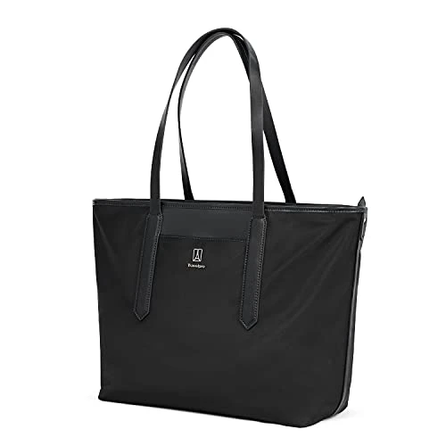 Details: Tote your work and personal items anywhere with the elegant and highly-durable Travelpro® Crew™ Executive Choice™ 3 Women’s Tote–built to last and designed for travel, commuting and everyday use with built-in organization and padded laptop/tablet storage.Crafted with high-quality, stain-resistant nylon fabric and leather accents, this Tote looks as good as it performs. Separate padded laptop and tablet sleeves protect electronics, while a zippered accessory pocket and key leash offer added interior organization. Outside, a Travelpro® QuickSlip™ front pocket with magnetic closure is ideal for storing a cell phone or other essentials for easy access. When it’s time to move, leather handles with 10″ drop fit comfortably over the shoulder, or use the unobtrusive rear stacking strap around the extension handle of a Rollaboard® or spinner suitcase for hands-free mobility. Backed by our Built For a Lifetime Limited Warranty with Trusted Companion Promise that even covers damage caused by airlines or other common carriers for the first year of the lifetime warranty.